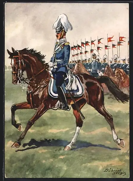 Künstler-AK Döbrich-Steglitz: Dragoner-Regiment Königin Olga Nr. 25, im Paraderitt
