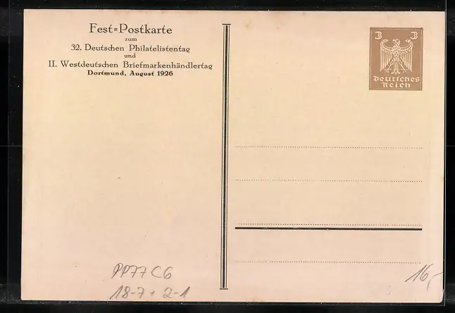 Künstler-AK Dortmund, Postwertzeichen-Ausstellung 1926, Postkutsche, Ganzsache PP77C6