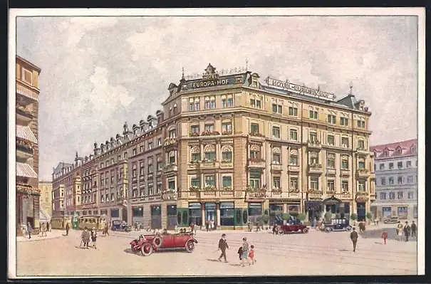 Künstler-AK Dresden, Hotel Europahof, Prager- Sidonienstr.