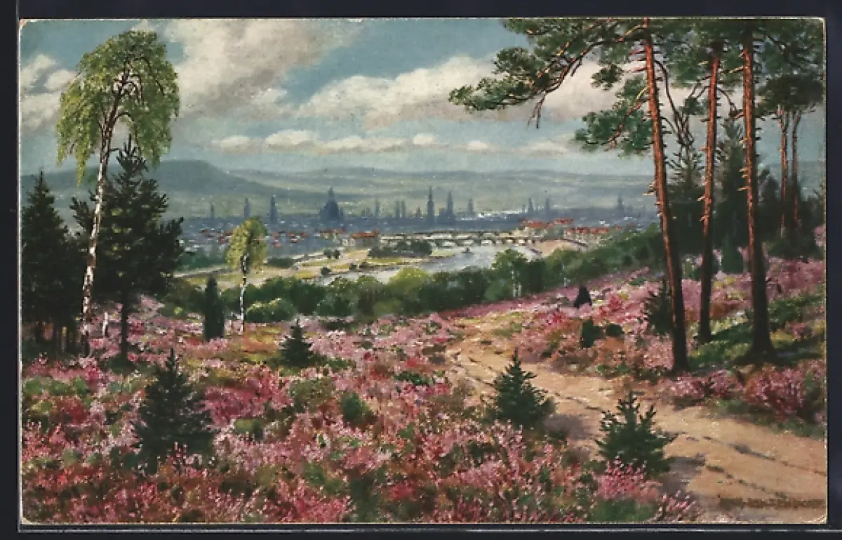 Künstler-AK Dresden-Loschwitz, Ortsansicht mit Dresdener Heide