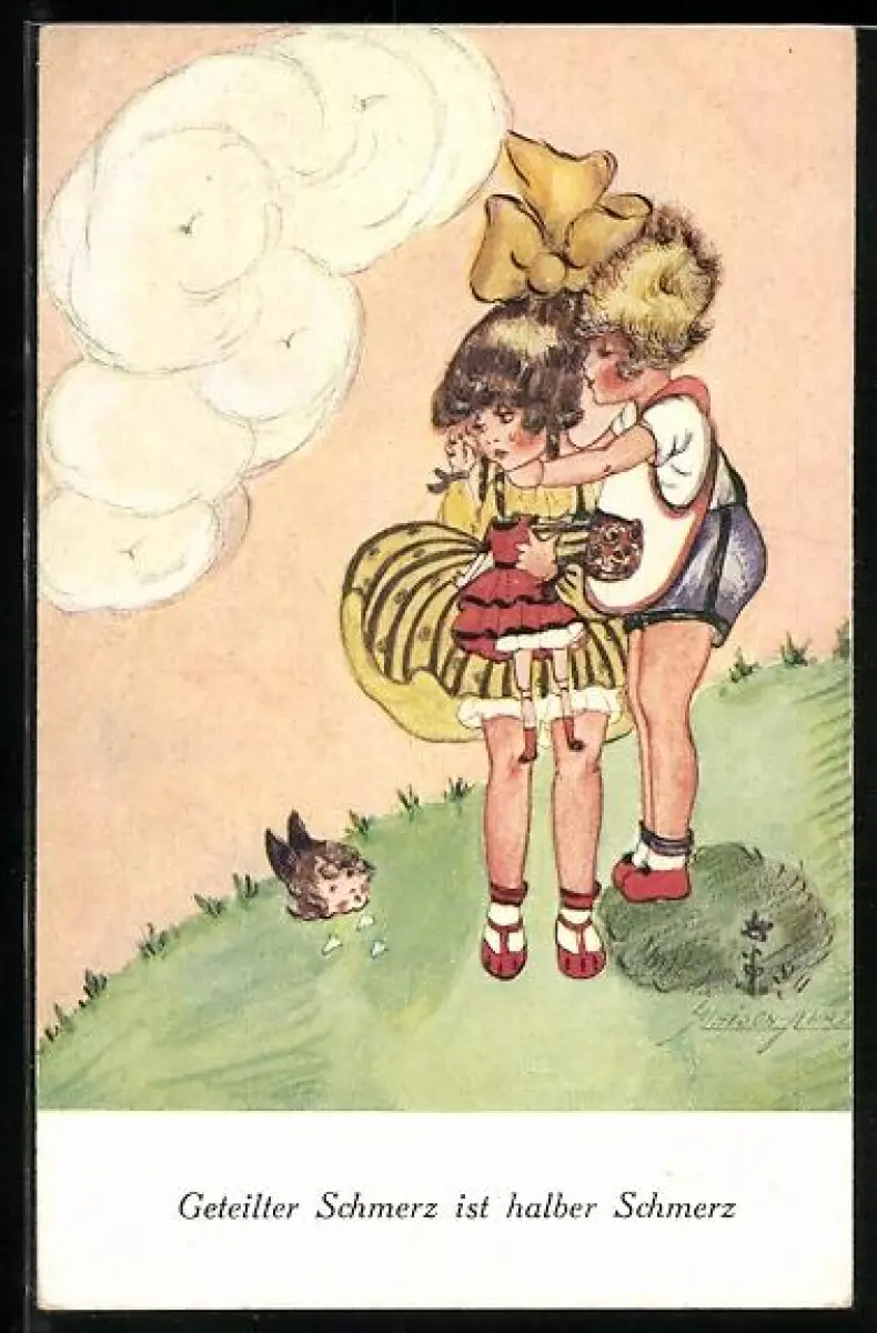 Künstler-AK Erna Maison-Kurt: Weinendes Mädchen wird umarmt