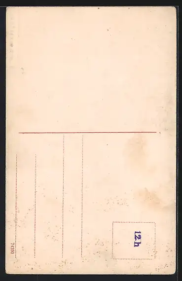 Personenbezogene Daten auf der Rückseite der Karte wurden durch blauen Textmarker unkenntlich gemacht. Die blauen Stellen sind auf die Vorderseite durchgeweicht und wirken sich negativ auf das Postkartenfoto aus