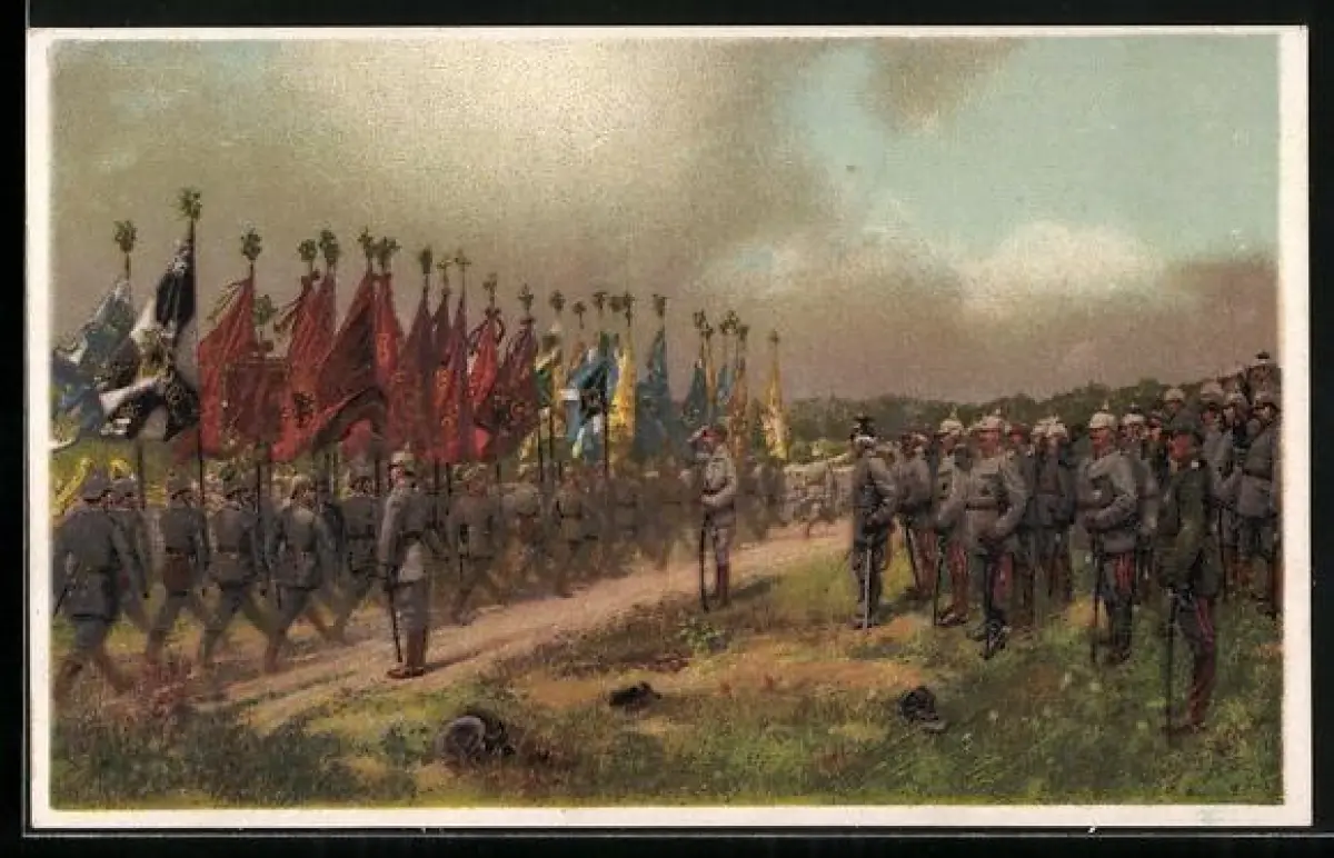 Künstler-AK Fahnenparade in den Argonnen, Kronprinz Wilhelm von Preussen