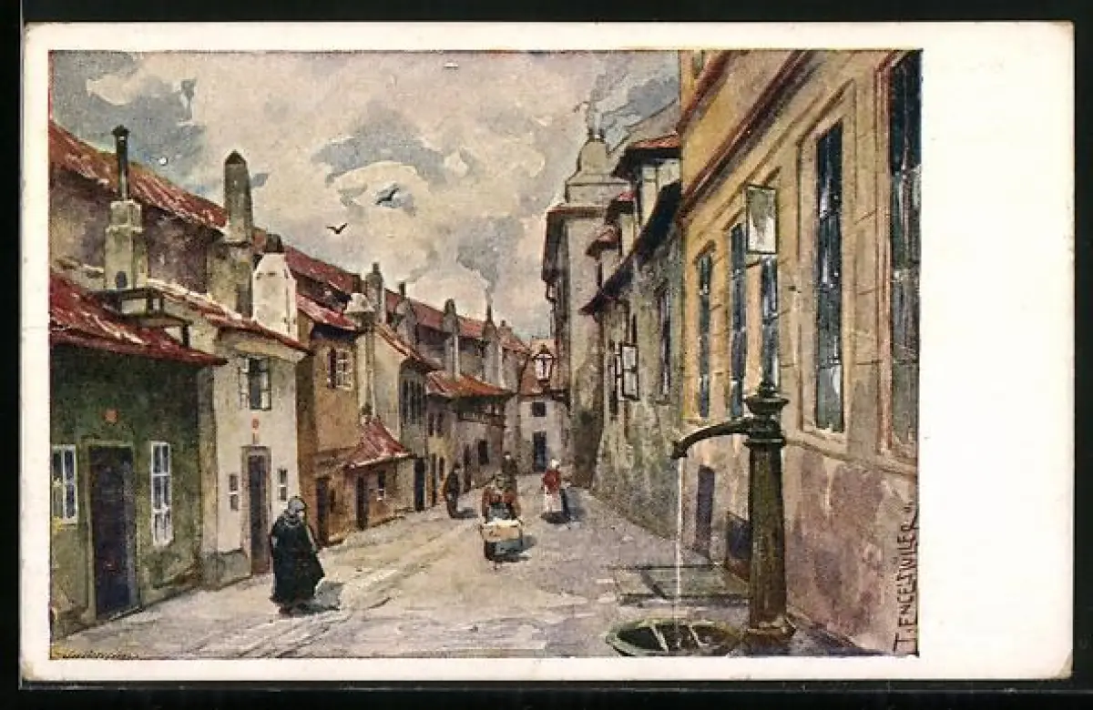 Künstler-AK Ferdinand Engelmüller: Prag, Zlatá ulicka, Strassenansicht