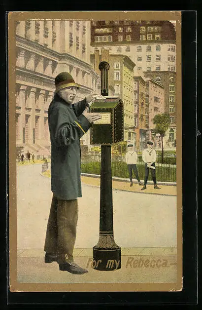 Künstler-AK For my Rebecca, Mann mit Hut wirft Brief in den Postkasten