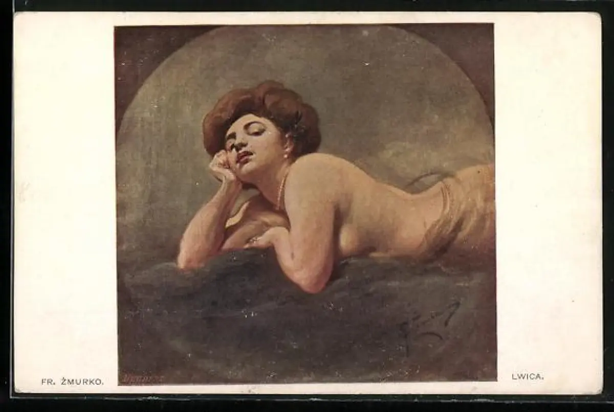Künstler-AK Franciszek Zmurko: Lwika, Halbnackte Frau auf einer Liege