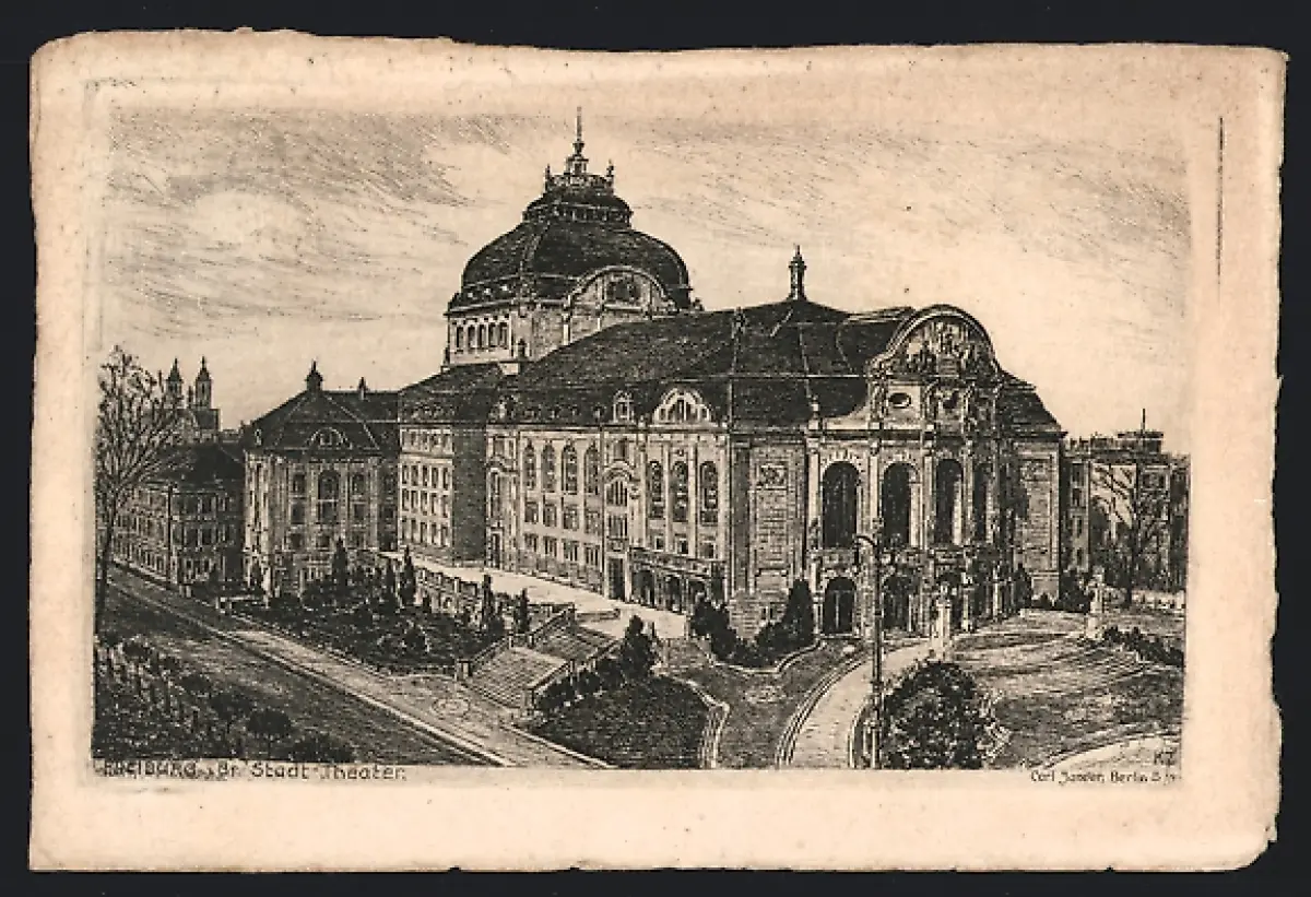 Künstler-AK Freiburg i. Br., Stadt-Theater, Totalansicht