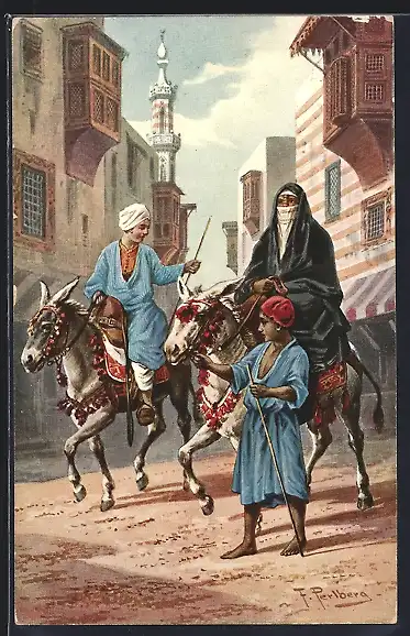 Künstler-AK Friedrich Perlberg: Eseljungen auf einer Strasse