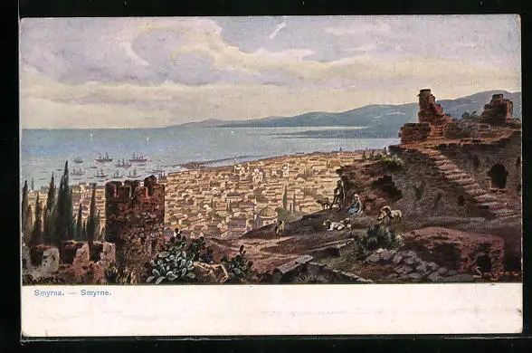 Künstler-AK Friedrich Perlberg: Smyrna, Ortsansicht aus der Vogelschau