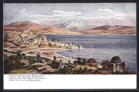 Künstler-AK Friedrich Perlberg: Tiberias, Stadtansicht am Ufer des See Genezareth