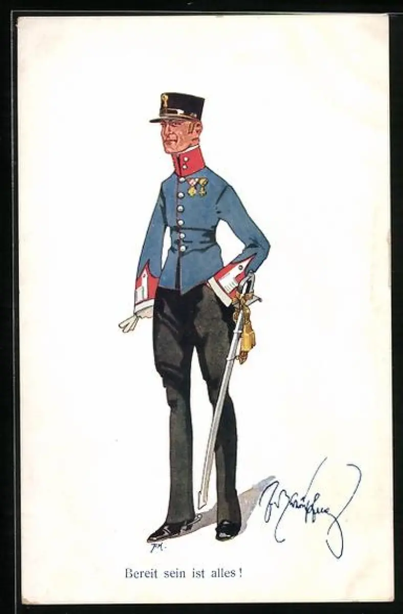 Künstler-AK Fritz Schönpflug: Bereit sein ist alles, Soldat in Uniform mit Schirmmütze