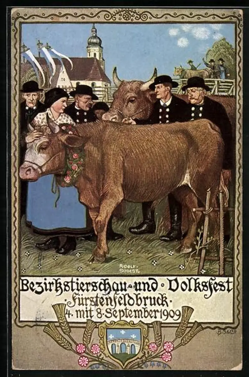 Künstler-AK Fürstenfeldbruck, Ausstellung Bezirkstierschau und Volksfest 1909, Rinder