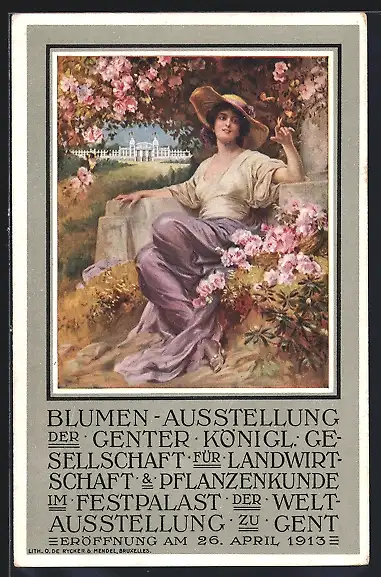 Künstler-AK Gand, Exposition Universelle 1913, Dame im Schatten eines Rosenbusches