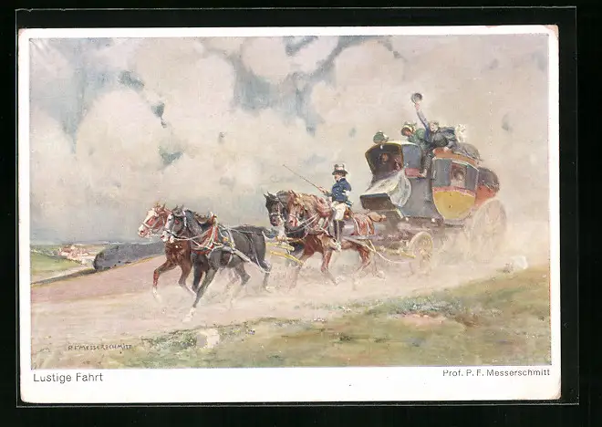 Künstler-AK Ganzsache PP101E5: Lustige Fahrt mit der Postkutsche
