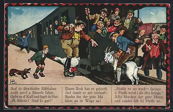 Künstler-AK Hans Boettcher: Auf de schwäbische Eisebahne wollt amol a Bäuerle fahre..., Scherz