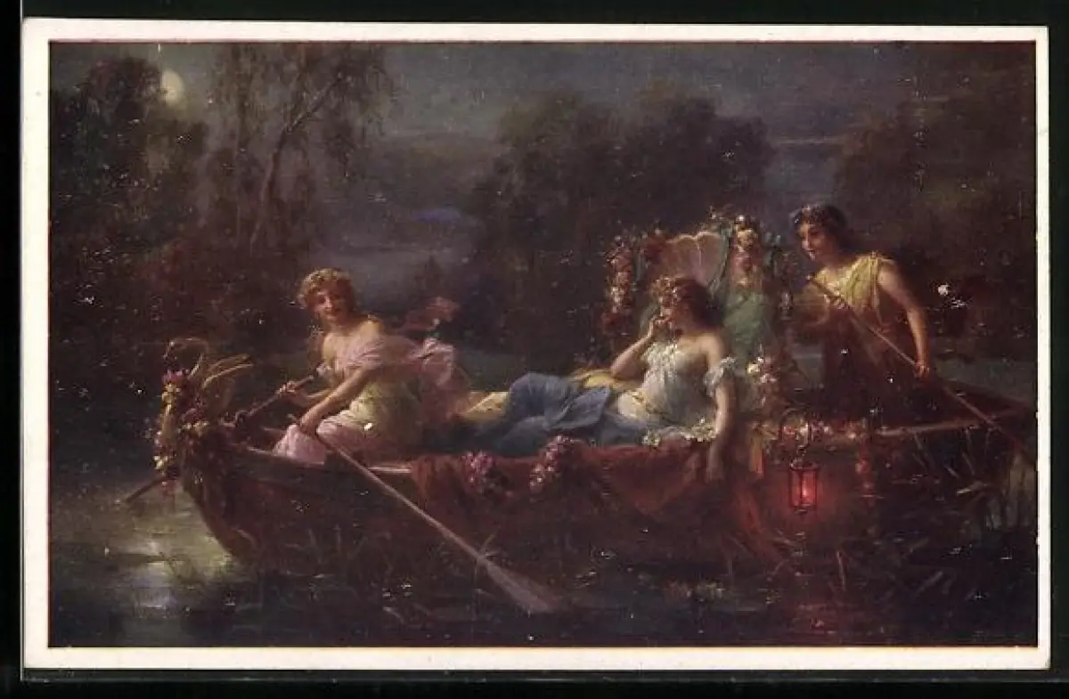 Künstler-AK Hans Zatzka: Abendzauber, Mädchen bei einer Bootspartie