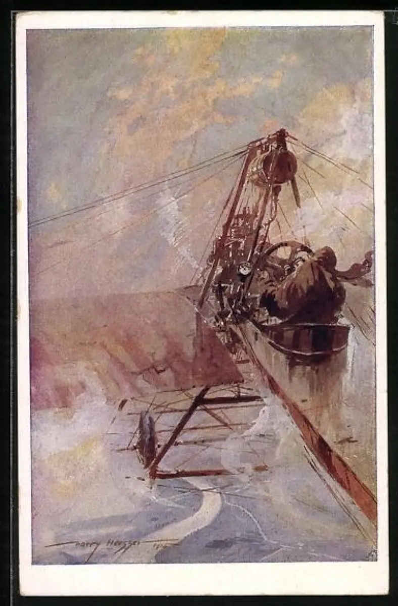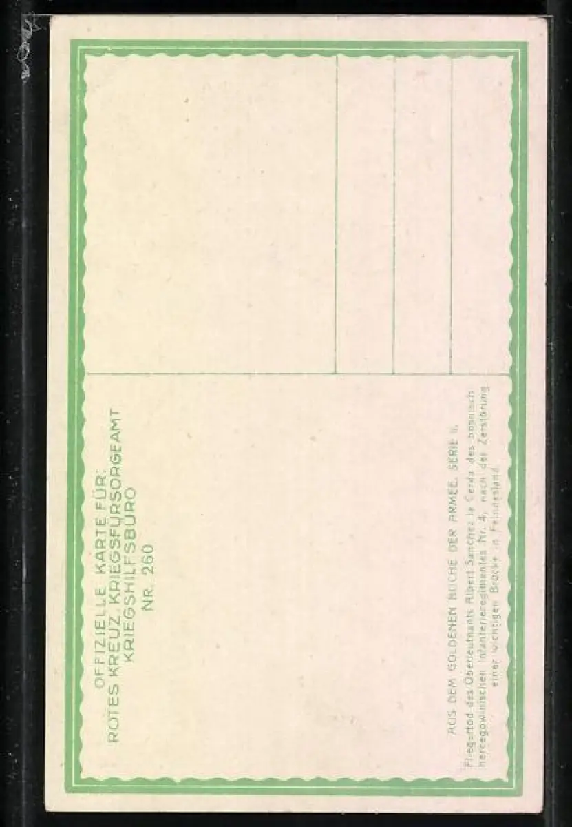 Künstler-AK Harry Heusser: Fliegertod des Oberleutnantes Albert Sanchez la Cerda, Rotes Kreuz