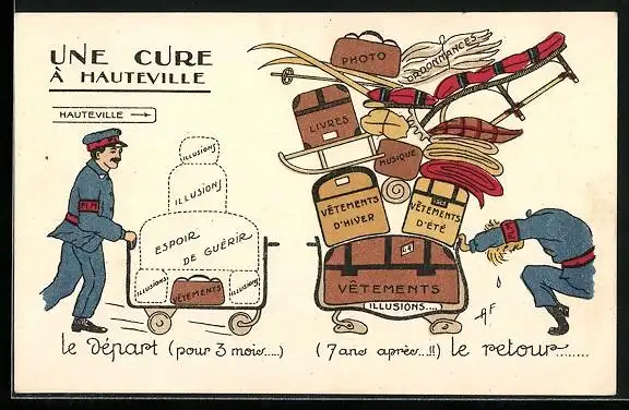 Künstler-AK Hauteville, Une Cure, le depart et le retour