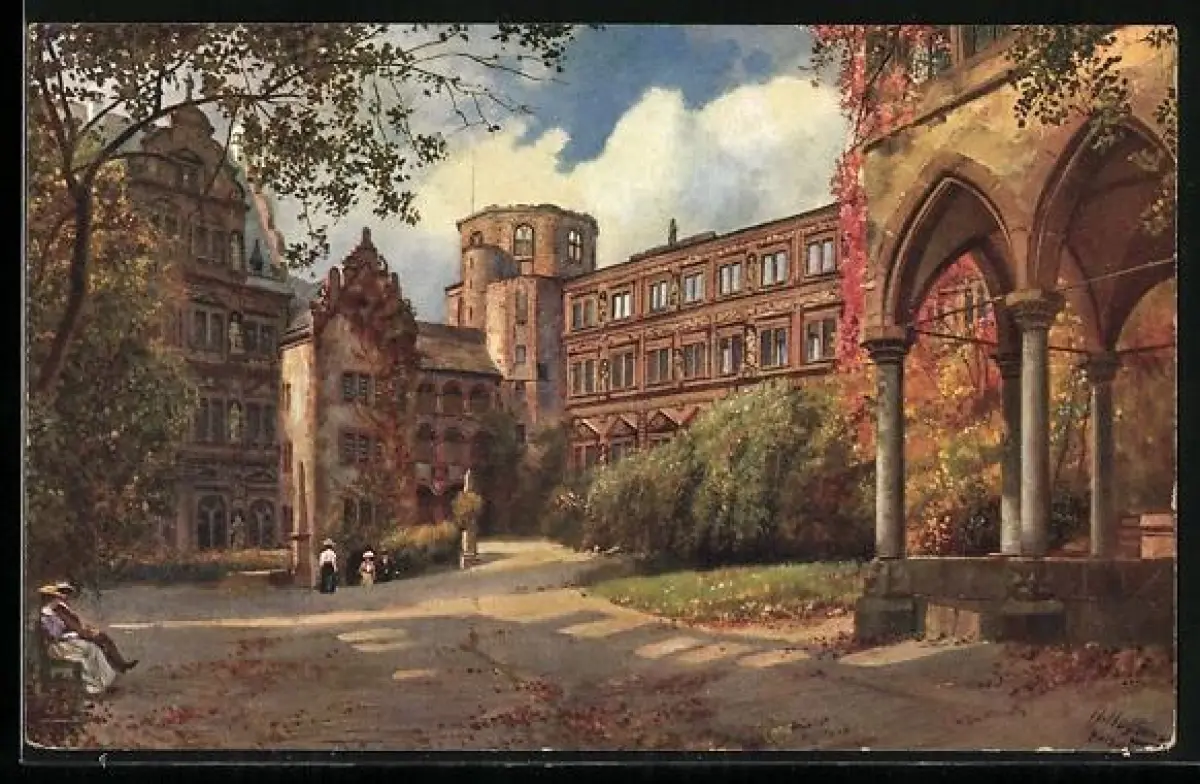 Künstler-AK Heinrich Hoffmann: Heidelberg, Der Schlosshof zur Herbstzeit