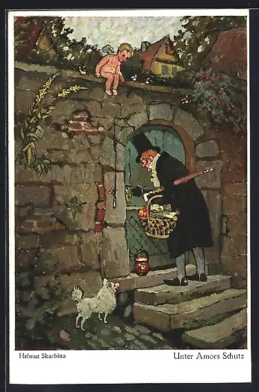 Künstler-AK Helmut Skarbina: Herr am Tor unter Amors Schutz
