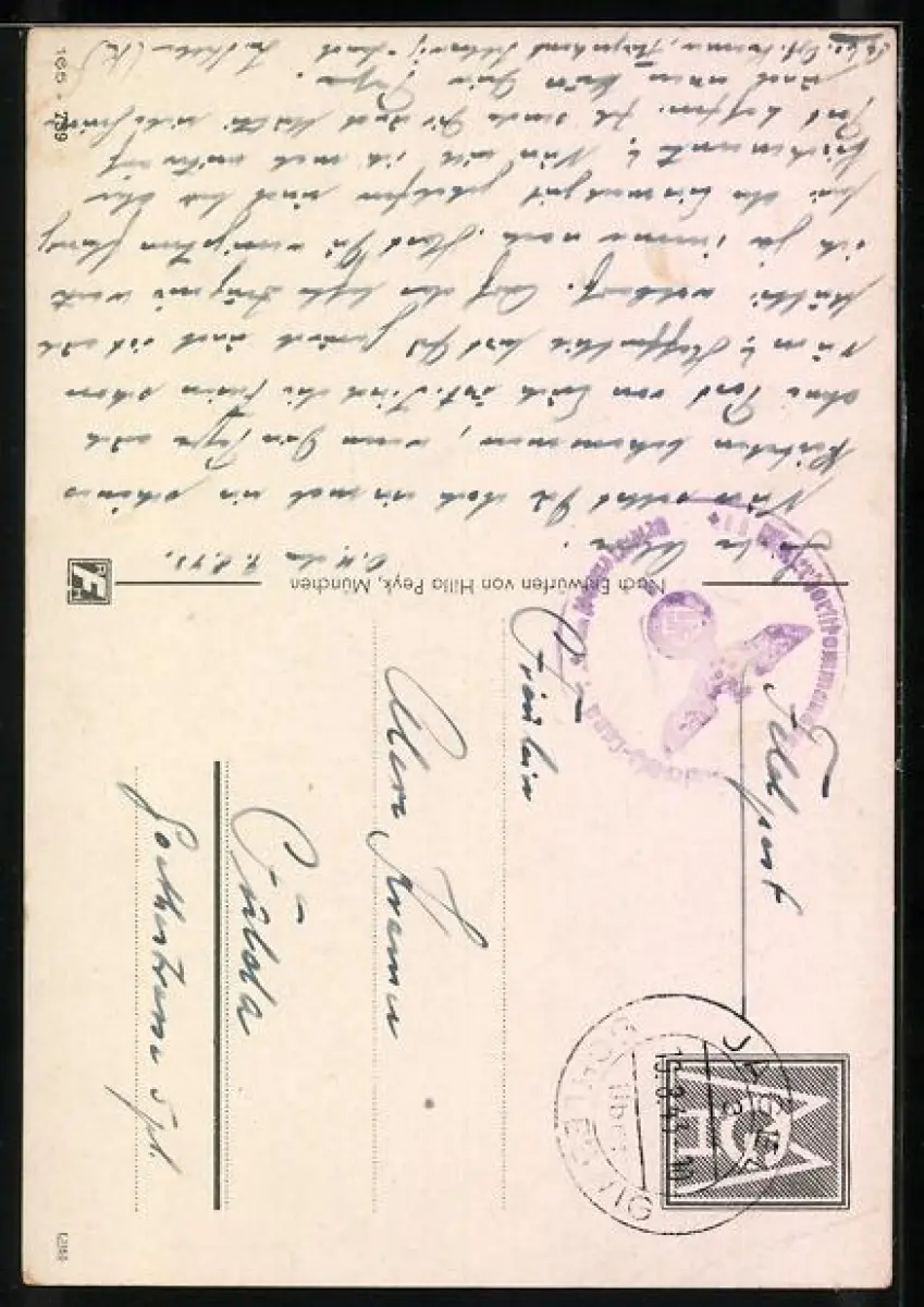 gelaufen 1943, Eckknicke li. unten u. re. oben, guter Zustand