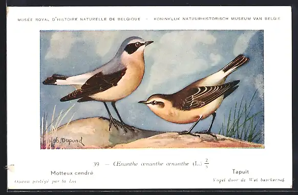 Künstler-AK Hubert Dupond: Motteux cendré, CEnanthe oenanthe oenanthe