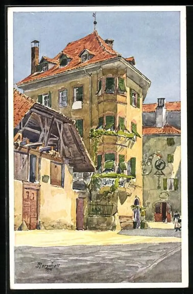 Künstler-AK J. Marschall: Bozen, Gasthaus Batzenhäusl
