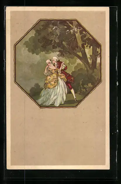 Künstler-AK Junger Mann beugt sich zu einer Frau in seinem Arm, Art Deco