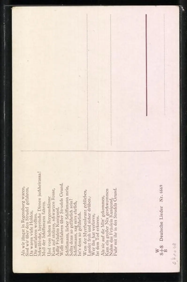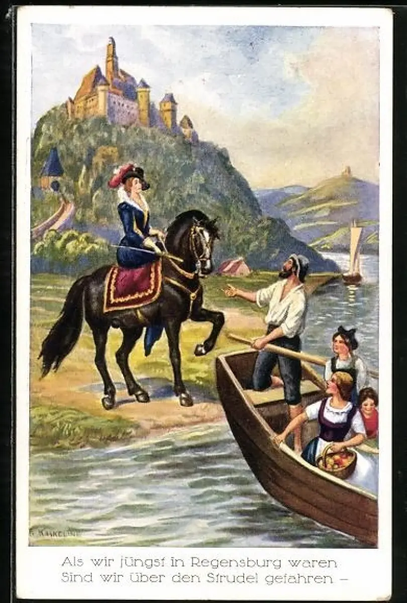 Künstler-AK Kaskeline: Fräulein Kunigrund möchte mit dem Schiffsmann über See fahren