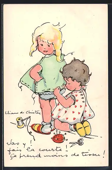 Künstler-AK Kind steckt den Saum eines Oberteils fest