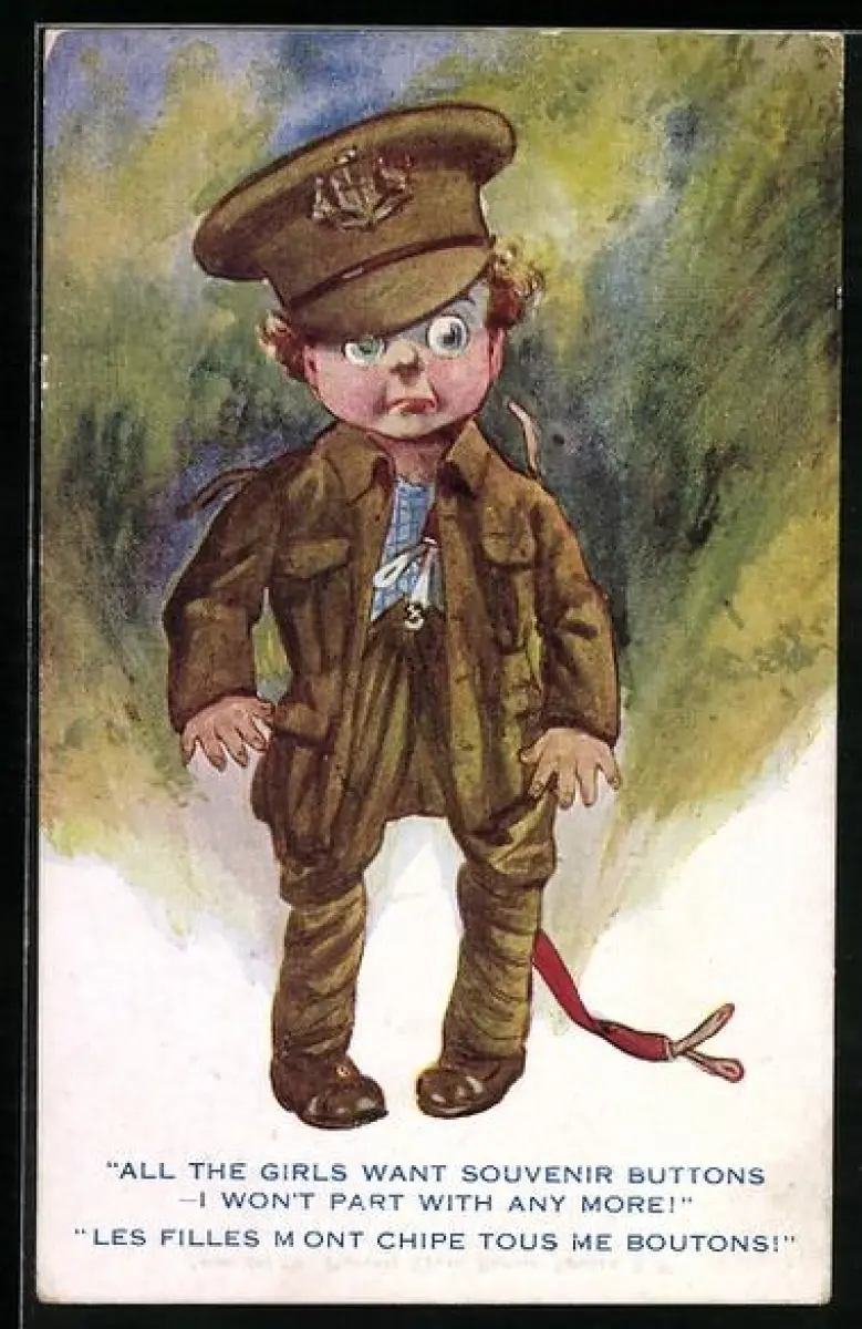 Künstler-AK Kleiner Soldat ohne Knöpfe