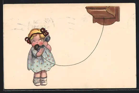 Künstler-AK Kleines Mädchen am Telefon