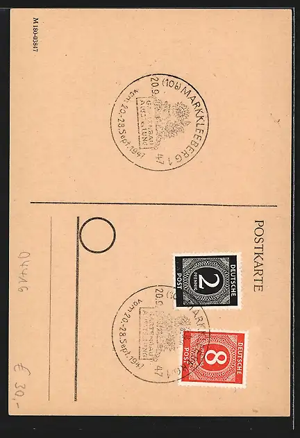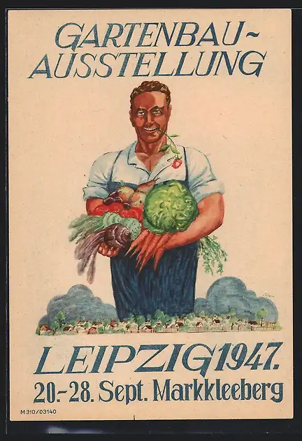 Künstler-AK Leipzig, Gartenbau-Ausstellung 1947, Bauer mit Feldfrüchten, DDR-Propaganda