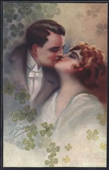Künstler-AK Liebespaar beim Kuss, Art Deco