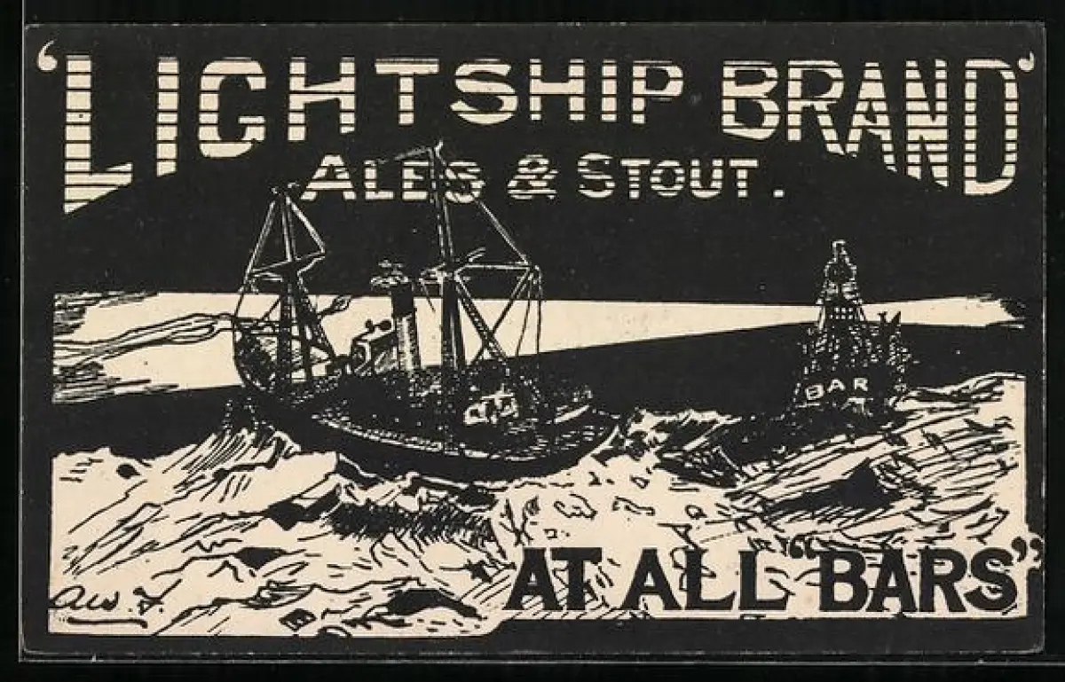 Künstler-AK Lightship Brand Ales & Stout, Brauerei-Werbung