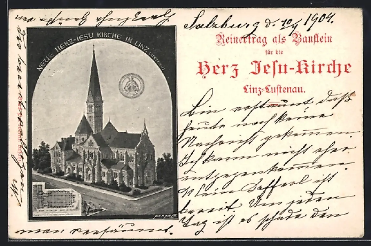 Künstler-AK Linz-Lustenau, Neue Herz-Jesu-Kirche