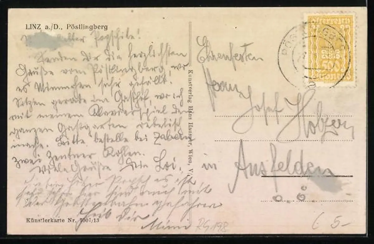 alte Ansichtskarte, gelaufen, rückseitig Klebe- und Papierreste, guter Zustand