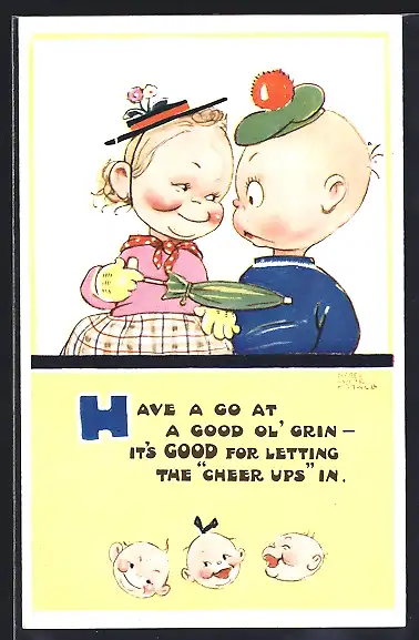 Künstler-AK Mabel Lucie Attwell: kleines Mädchen flirtet mit einem kleinen Jungen