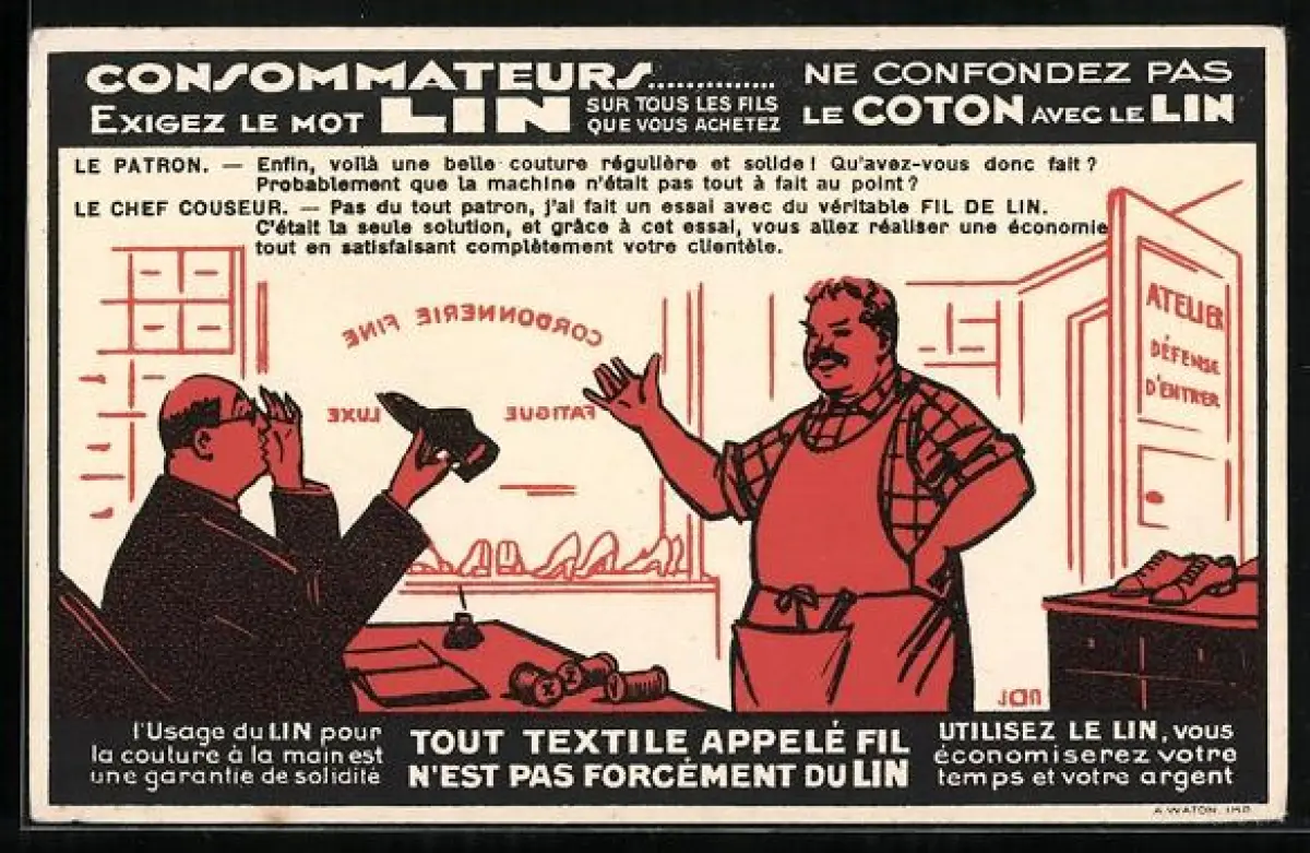 Künstler-AK Mann beim Schuster, Reklame für Lin