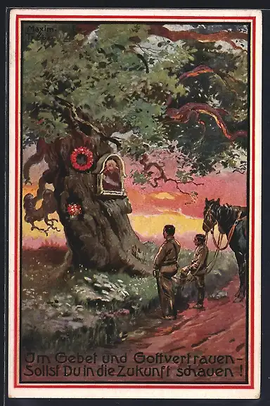 Künstler-AK Maxim Trübe: Im Gebet und Gottvertrauen..., Soldaten am Heiligenbild