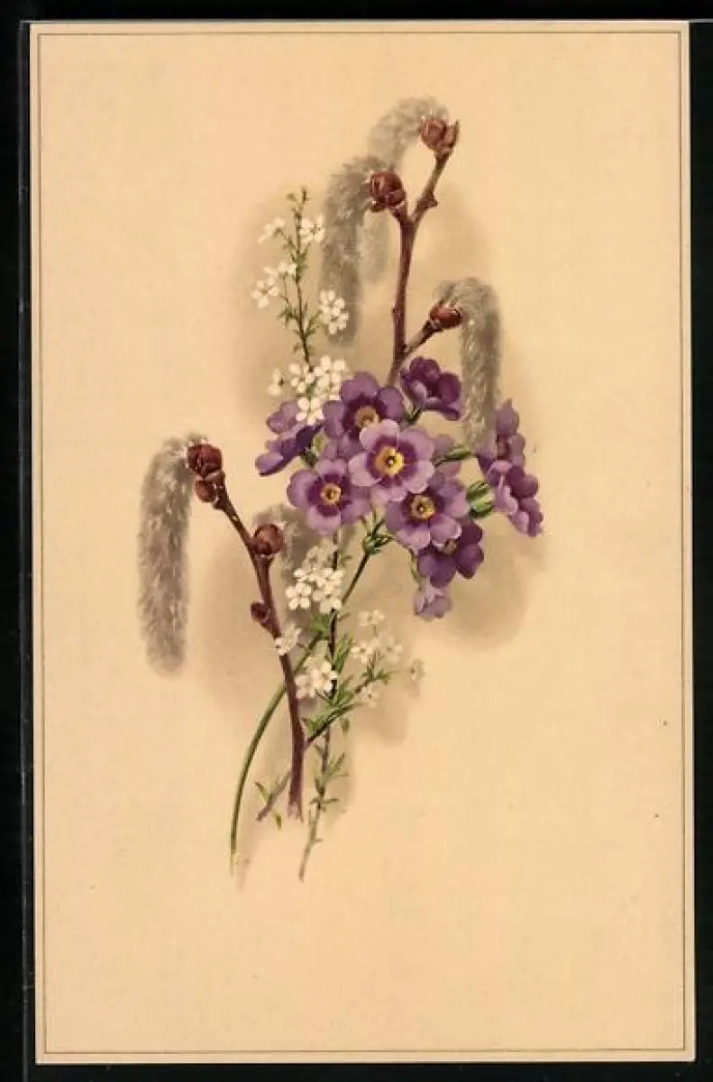 Künstler-AK Meissner & Buch (M&B) Nr. 2210: Kätzchenzweige mit Anemonen