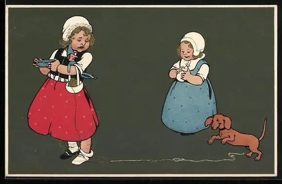 Künstler-AK Meissner & Buch (M&B) Nr.1378: Kinderhumor, Kinder mit Dackel