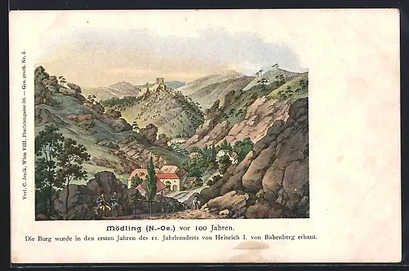 Künstler-AK Mödling /N.-Oe., Blick auf den Ort vor 100 Jahren