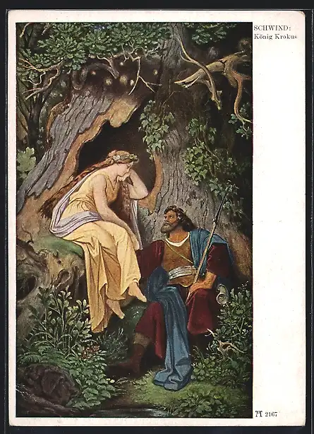 Künstler-AK Moritz von Schwind: König Krokus und die Waldnymphe im Gespräch