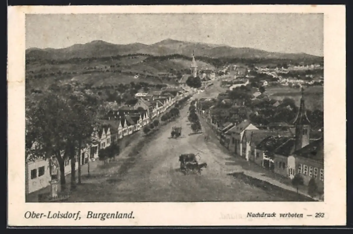 Künstler-AK Ober-Loisdorf /Burgenland, Strassenpartie mit Kirche