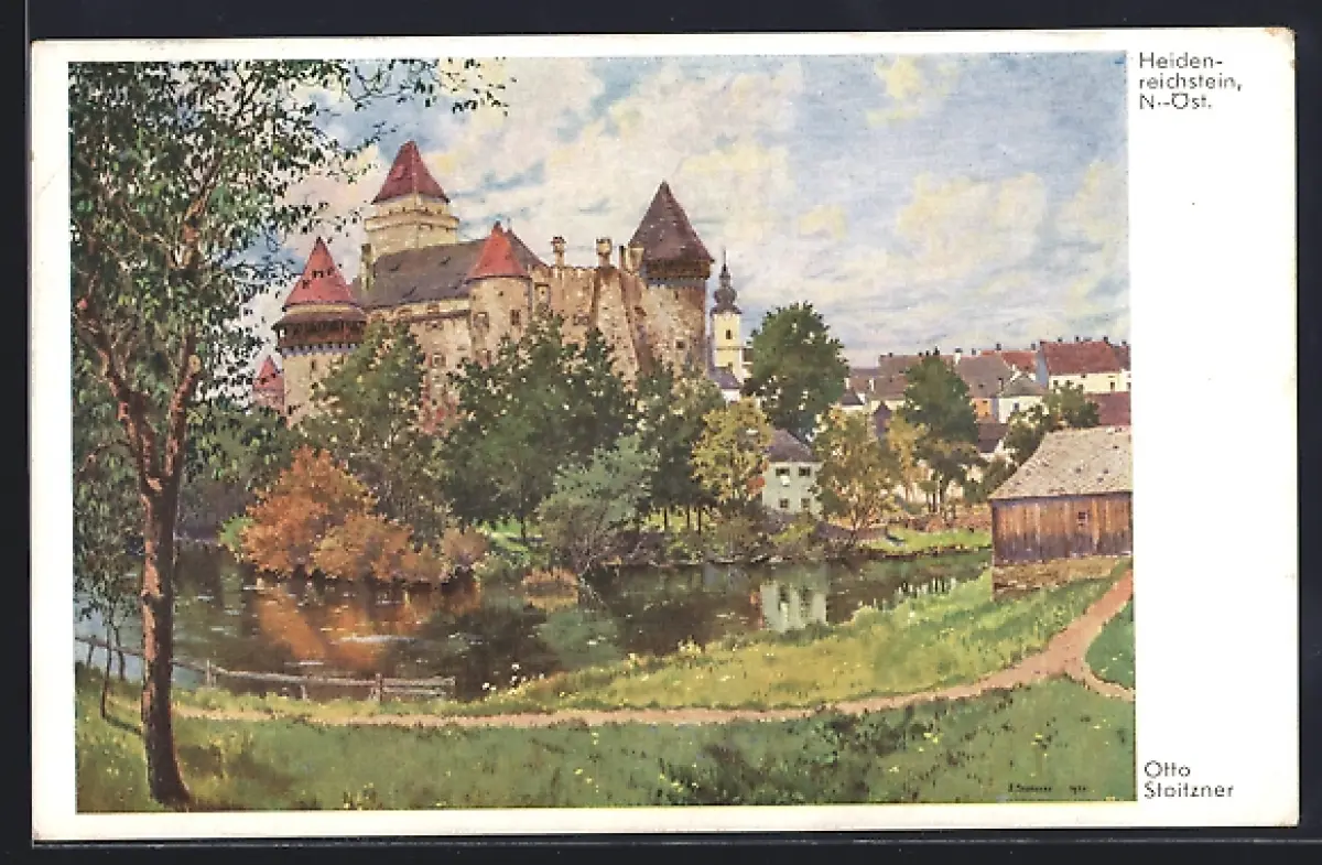 Künstler-AK Otto Stoitzner: Heidenreichstein, Uferpartie mit Burg