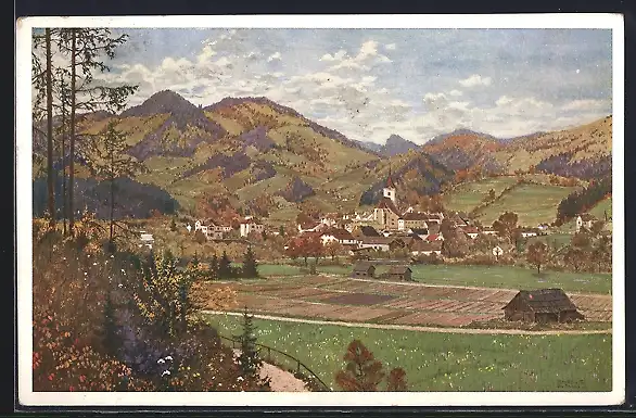 Künstler-AK Otto Stoitzner: Türnitz /Traisen, Panorama des Ortes mit Kirche