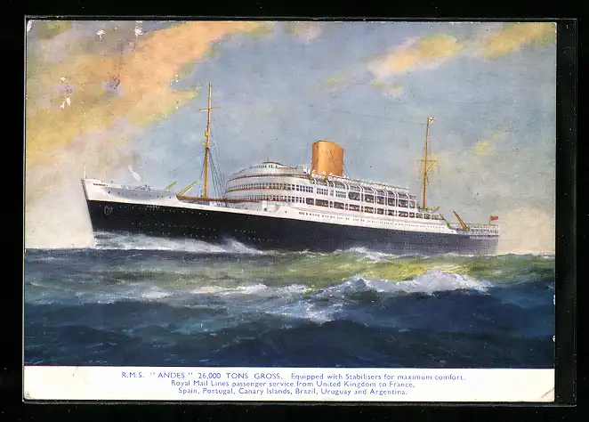 Künstler-AK Passagierschiff RMS Andes auf See, Royal Mail Lines