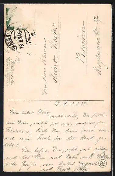 alte Ansichtskarte, gelaufen 1924, Briefmarke entfernt, rückseitig Oberflächenschaden, Stempelspur, guter Zustand