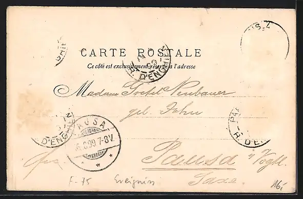gelaufen 1899, Briefmarke entfernt, Bugspur re., guter Zustand